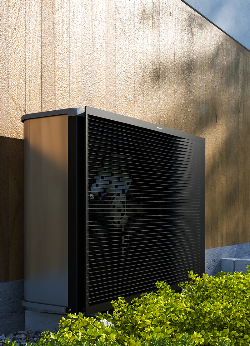 wysokowydajna pompa ciepła Daikin, zapewniająca wysoką temperaturę wody nawet przy bardzo niskich temperaturach zewnętrznych.